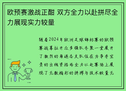 欧预赛激战正酣 双方全力以赴拼尽全力展现实力较量