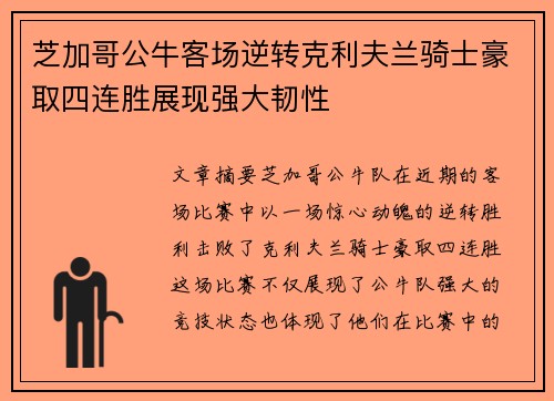 芝加哥公牛客场逆转克利夫兰骑士豪取四连胜展现强大韧性