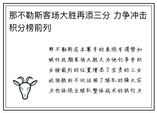 那不勒斯客场大胜再添三分 力争冲击积分榜前列
