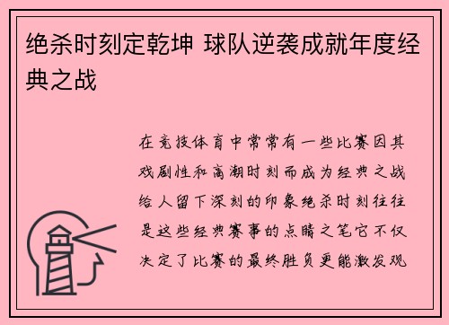 在竞技体育中,常常有一些比赛因其戏剧性和高潮时刻而成为经典之战,给人留下深刻的印象。绝杀时刻往往是这些经典赛事的点睛之笔,它不仅决定了比赛的最终胜负,更能激发观众的热情和球员的斗志。本文将通过探讨“绝杀时刻定乾坤,球队逆袭成就年度经典之战”...