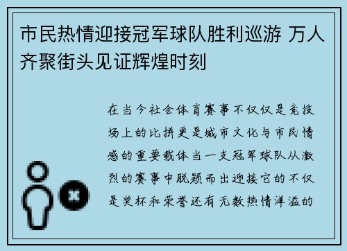 市民热情迎接冠军球队胜利巡游 万人齐聚街头见证辉煌时刻
