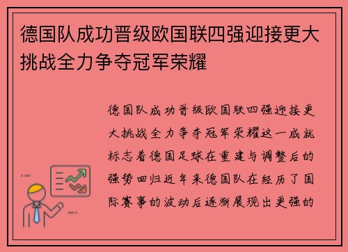 德国队成功晋级欧国联四强迎接更大挑战全力争夺冠军荣耀