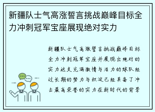 新疆队士气高涨誓言挑战巅峰目标全力冲刺冠军宝座展现绝对实力