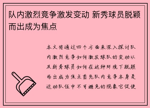 本文将通过四个方面来深入探讨队内激烈竞争如何激发球队的变动,以及新秀球员如何在这种环境下脱颖而出成为焦点。首先,队内竞争本身是运动队伍中不可避免的现象,它促使每个球员不断挑战自己,提高竞技状态。其次,球队的阵容调整、战术变化往往与这种竞争密...
