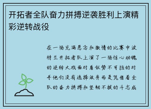 开拓者全队奋力拼搏逆袭胜利上演精彩逆转战役