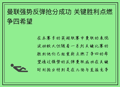 曼联强势反弹抢分成功 关键胜利点燃争四希望